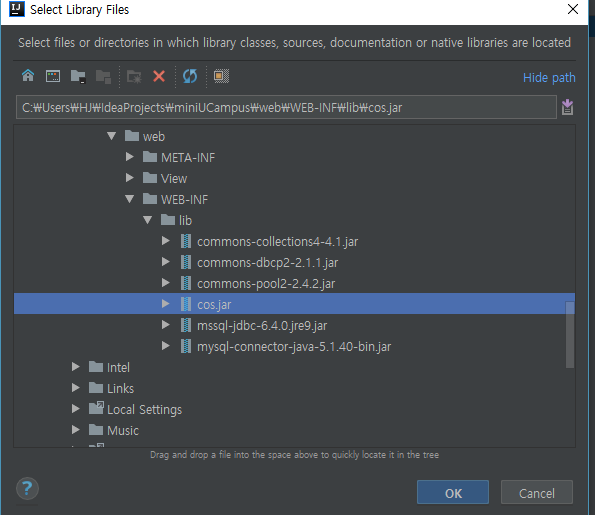 WEB-INF/lib에 있던 cos.jar를 선택하면 끝!