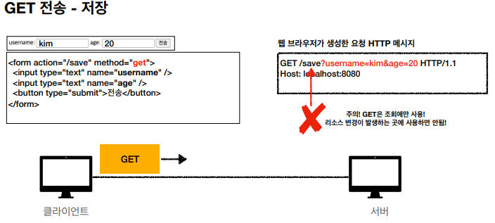 - GET은 쿼리 파라미터 사용해서 데이터를 전달