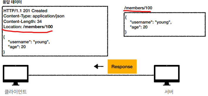 • 서버가 새로 등록된 리소스 URI를 생성해준다.