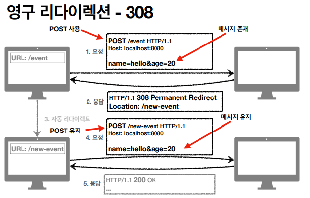 - 리다이렉트시 요청 메서드와 본문 유지(처음 POST를 보내면 리다이렉트도 POST 유지)