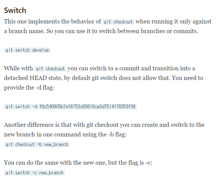 Git Switch can also take us to a previous commit point with the help of -d or --detach.