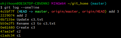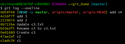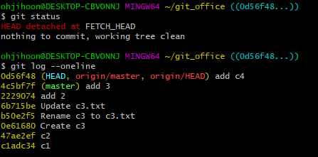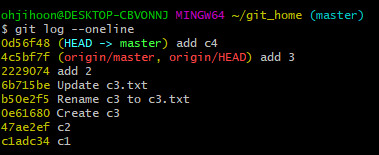 (HEAD -> master) 는 방금 커밋한 'add c4.txt'를 가르킴