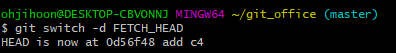 로컬 저장소의 최종 커밋이 add c4 라는 뜻